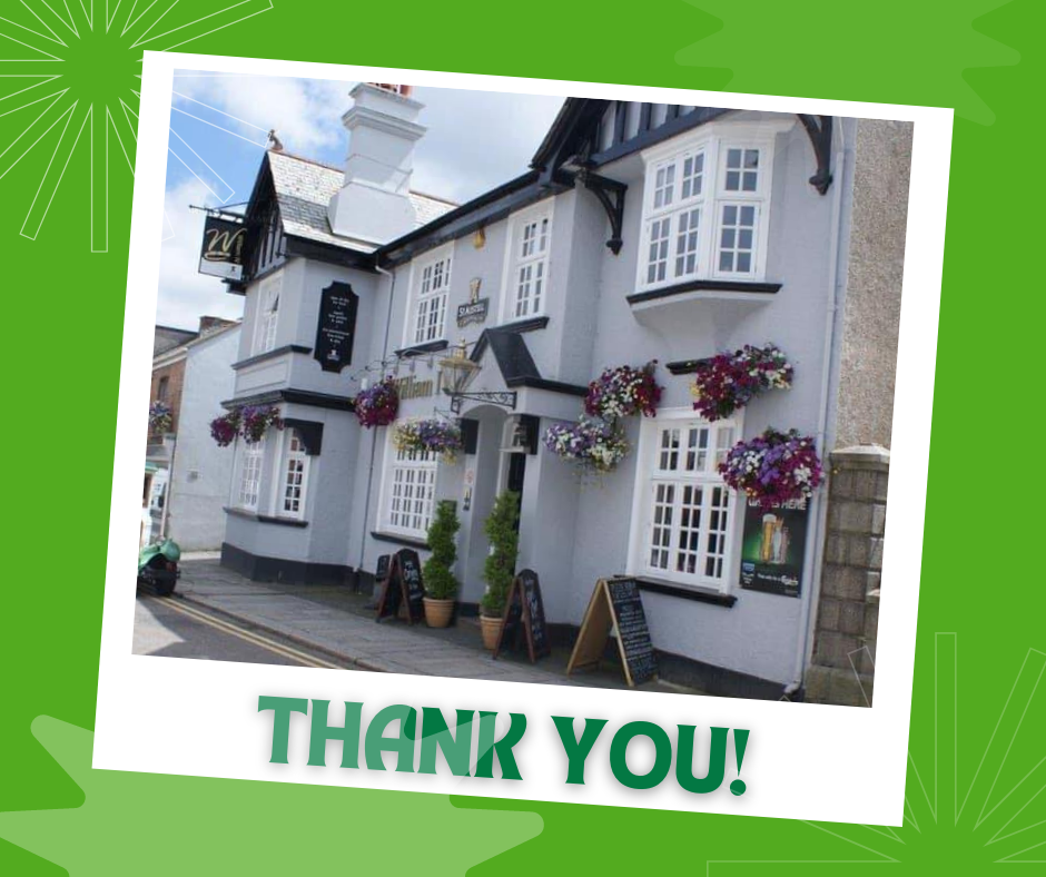 Truro Foodbank was the nominated beneficiary from their quiz nights and recently Simon, our Manager, went to the pub to thank them and receive an amazing £800 in cash as well as some donated food